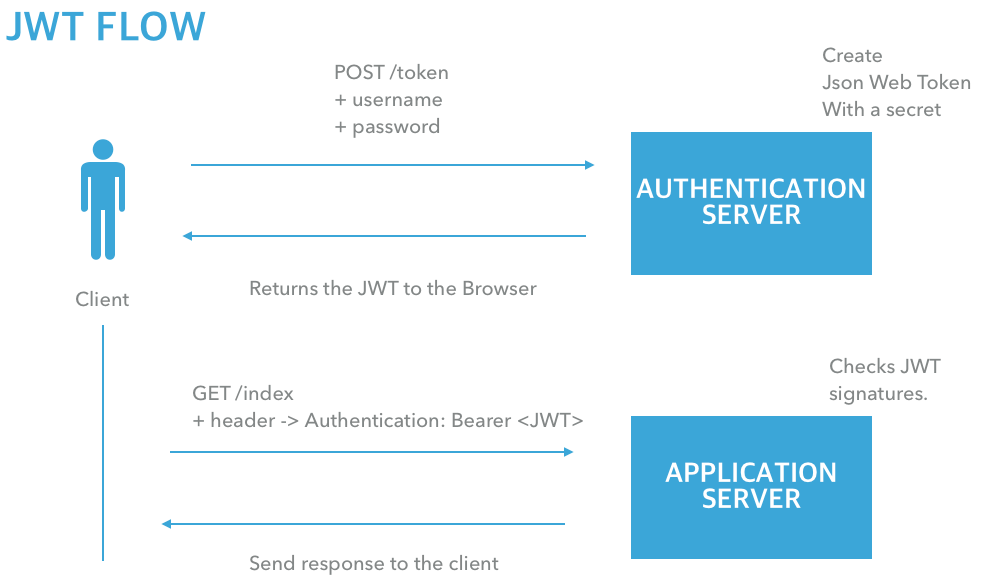 - 서버의 보호된 라우트는 Authorization 헤더에 있는 jwt 를 체크하고 확인되면 유저는 보호된 리소스에 엑세스 할 수 있다.