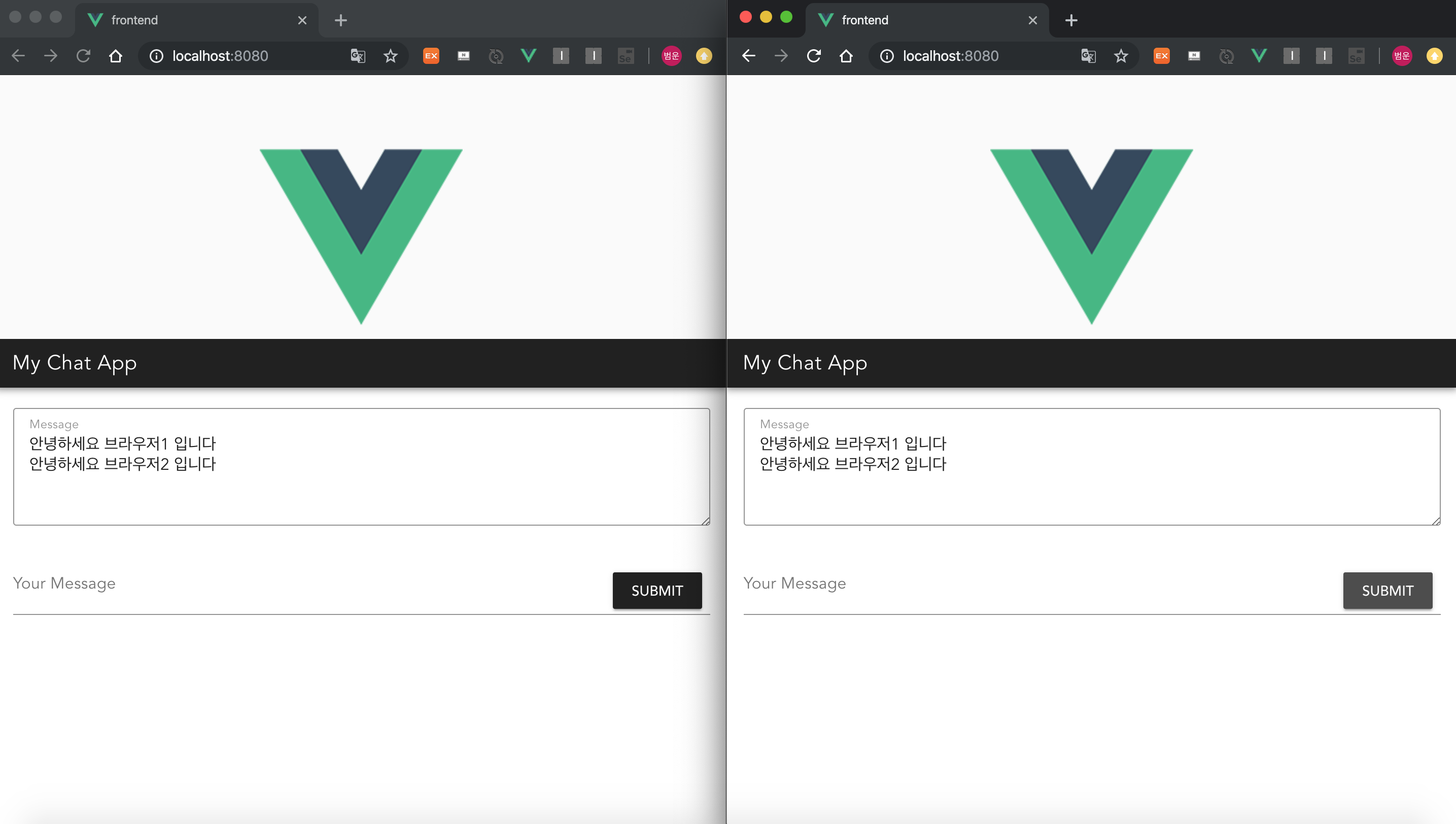 브라우저를 2개 띄우고 localhost:8080 으로 접속합니다.