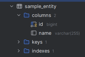 위의 설정을 완료 후 application run 하면 아래처럼 테이블이 자동으로 생성된것을 확인할 수 있다.